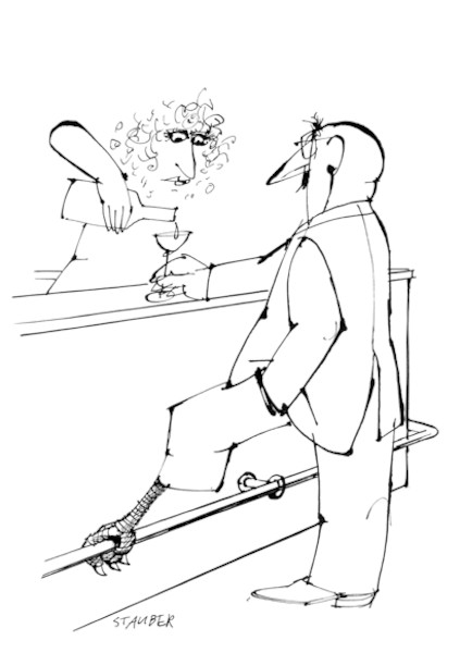 Ob Philosophie, Gesellschaft, Arbeit oder Beziehungen – so gross wie die Vielfalt von Staubers Themen ist die fast schon wissenschaftliche Akribie, mit der er diese in unzähligen Variationen untersucht und auf den Punkt gebracht hat. Sein Werk von gegen siebzehntausend kleinformatigen Metaphern ist geprägt von präziser Beobachtung, sinnlicher Fantasie, elegantem Handwerk und leisem Humor. Die poetische Bildsprache sowie die überlegt und zurückhaltend mit der Tuschfeder gesetzten Linien und Schraffuren erinnern an die grossen europäischen Zeichner und Staubers Zeitgenossen Bosc, Chaval, Flora und Sempé, die ebenfalls mit Originalen in der Ausstellung vertreten sein werden. Das Cartoonmuseum Basel präsentiert Jules Stauber zudem als prägenden Künstler des «Nebelspalter» und ergänzt sein Schaffen mit Arbeiten von Zeichnerkollegen, die mit ihm in der renommierten Schweizer Satirezeitschrift publizierten. Inhalte, Formen und Grenzen der satirischen Kritik an der Gesellschaft der zweiten Hälfte des zwanzigsten Jahrhunderts werden in der Ausstellung greifbar und lebendig.